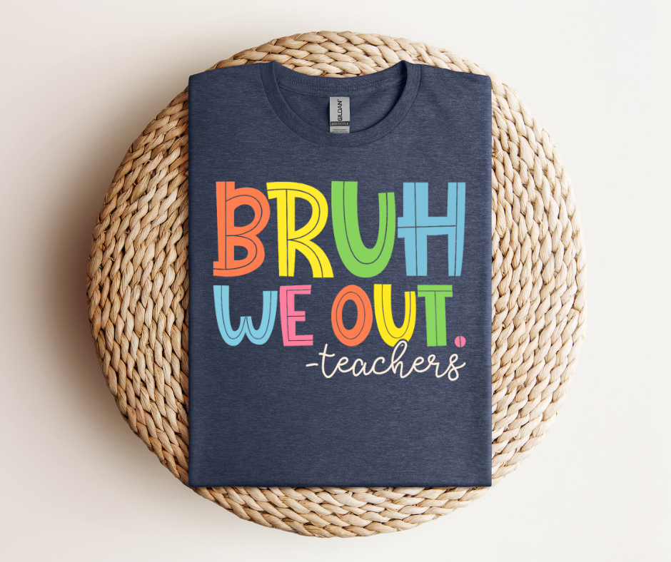 Unleash your summer style with our 'Bruh - We Out' tshirt for teachers. Stay cool and comfortable while expressing your passion for teaching and summer!