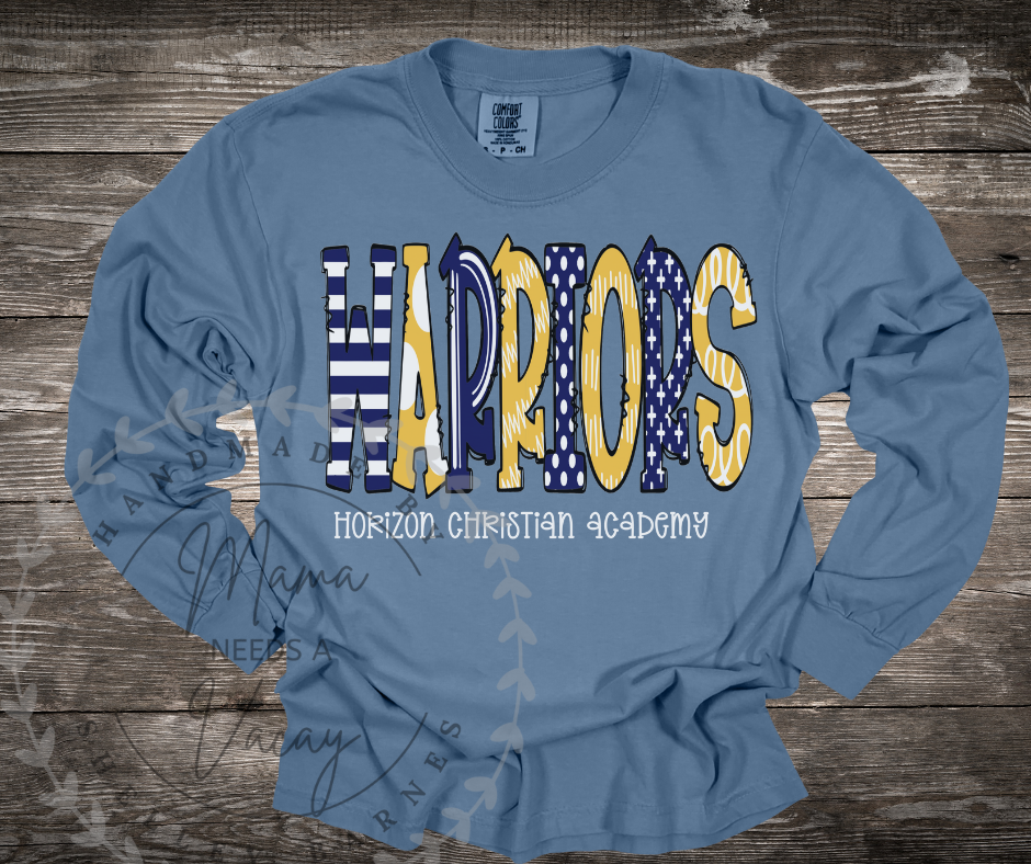 Show your school pride loud and proud with our HCA Warriors spirit tee! Perfect for game days, pep rallies, or just repping your Warriors every day of the week.