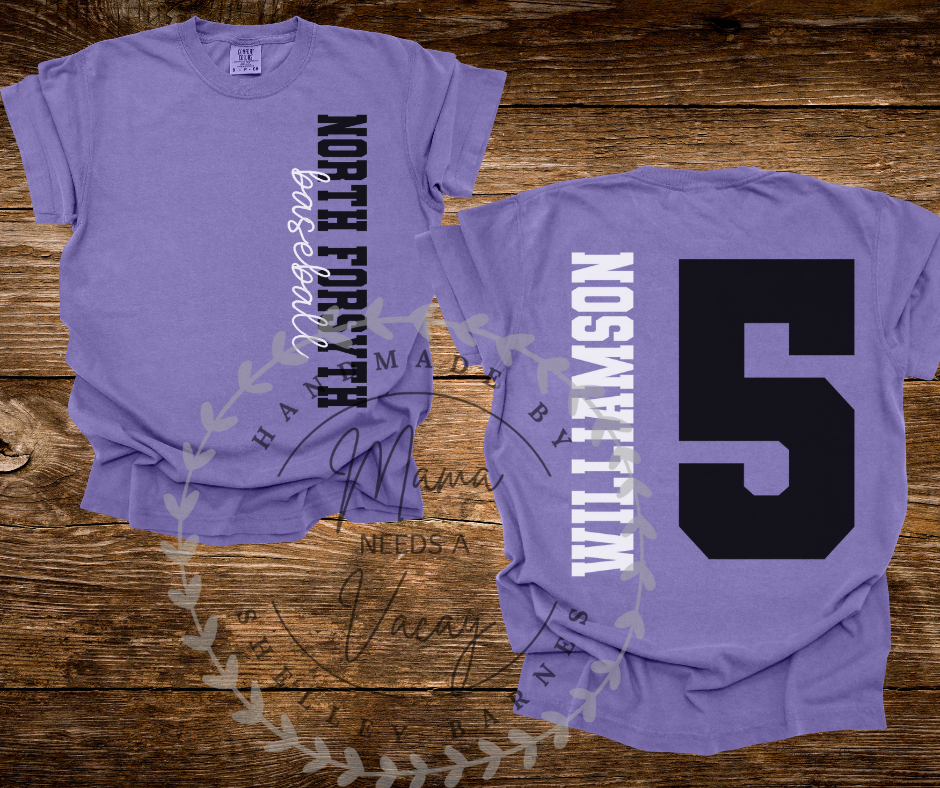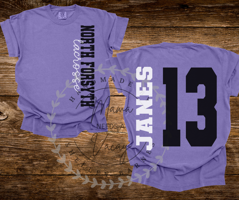 Rep your team in bold style with our Vertical Team Spirit Tee! Featuring a striking vertical team name down the front and the option to customize the back with your name and number, this shirt is a game day essential.