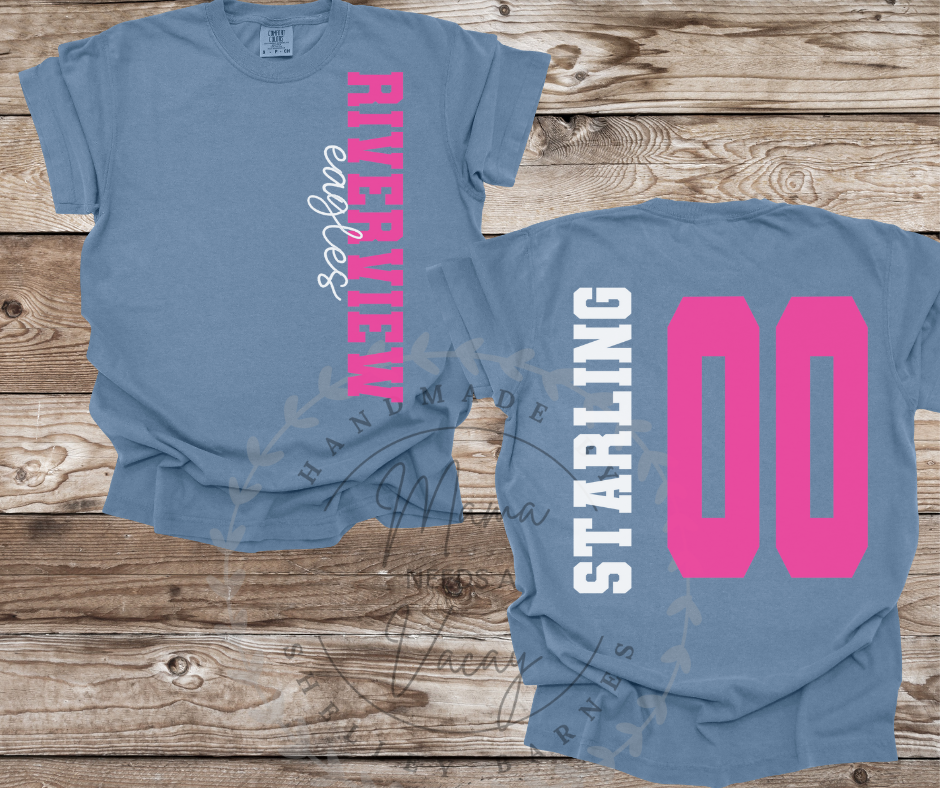 Rep your team in bold style with our Vertical Team Spirit Tee! Featuring a striking vertical team name down the front and the option to customize the back with your name and number, this shirt is a game day essential.